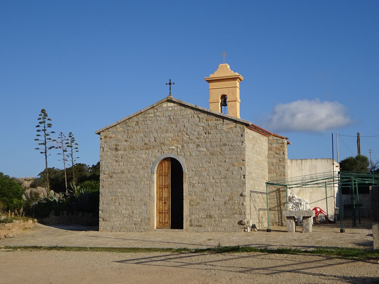 La région est parsemée de petits villages charmants, comme Tuili, avec ses maison en pierre et sa petite église à laquelle on accède par une jolie cour intérieure. Le tumulte des voitures des abords de Cagliari a fait place au chant des oiseaux, et accessoirement aux aboiements des chiens quand je passe…